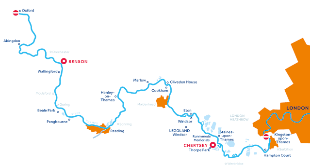 Benson and Chertsey are not towns that most people outside of England are familiar with. But I'm sure most people have heard of London, Oxford, Windsor or Eton. Well, these are some of the places we'll be visiting on our trip. This simple map shows the route we will be taking. We will fly into London and then rent a car and drive to Oxford (to the west of Benson, not on this map), spending a day or so there sightseeing. On the appointed day, we'll drive to the LeBoat base in Benson and load our things onto the boat. Then we'll head to the nearest supermarket and buy some provisions to get us started. And once we return the rental car, we'll be off on our Thames Voyage!